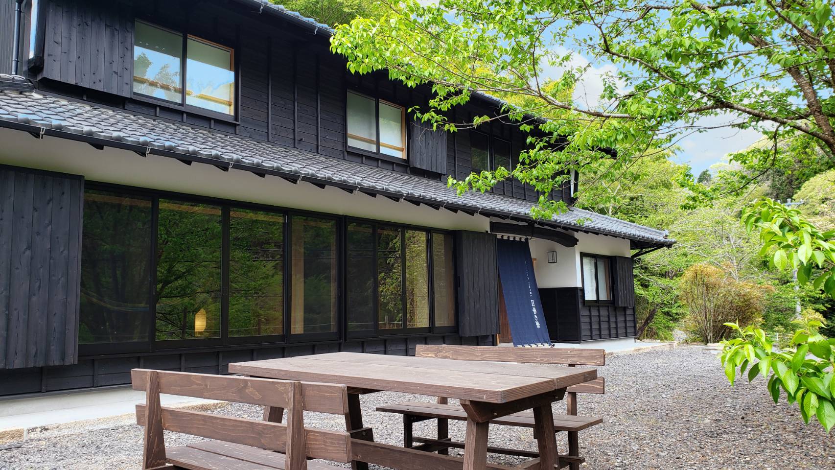 築130年 岐阜県の東部、御嵩町津橋地域にひっそりと佇む、一棟貸しリノベーション古民家宿「四季の家」は、自然豊かな山林を背負い、眼前の桜の大樹越しには、清らかな小川と穏やかな田畑を望む、四季の自然の移ろいを肌で感じられる古民家宿です。